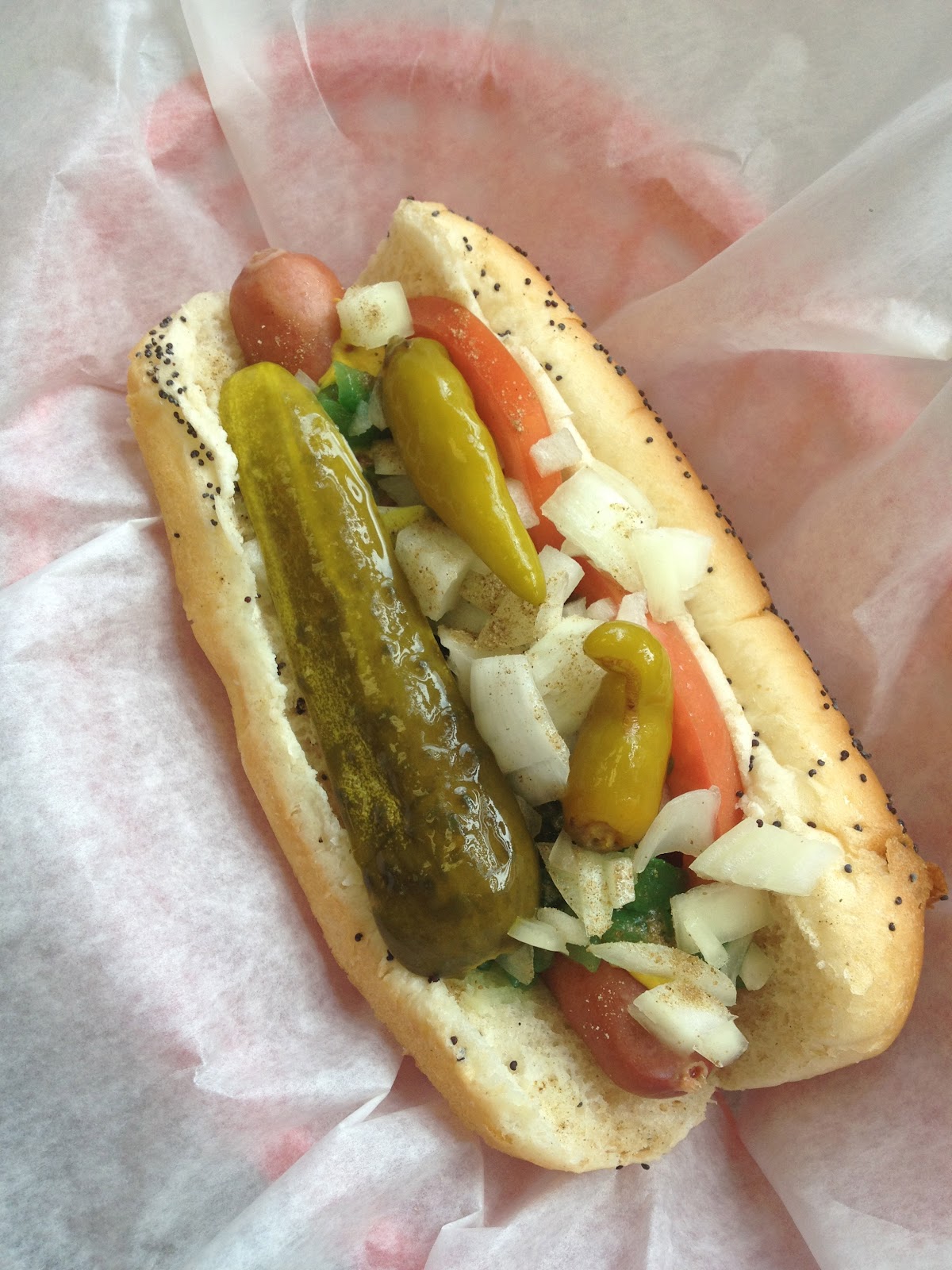 Never had a chicago dog, and frankly not a big hot dog fan at all. My favorite, if I must be honest, and I must, is at a baseball game. Not the big foot long or sausage thing or whatever. The shitty steamed wrinkly old little thing in the aluminum foil wrap. Love em and can eat a dozen. But I digress.